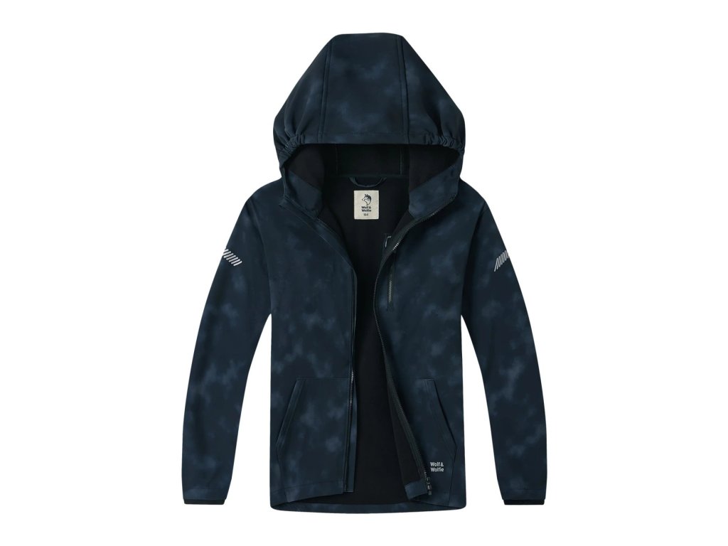 Stylová a funkční chlapecká softshellová bunda v černé barvě s velmi jemnou batikou působí moderně a nadčasově.
