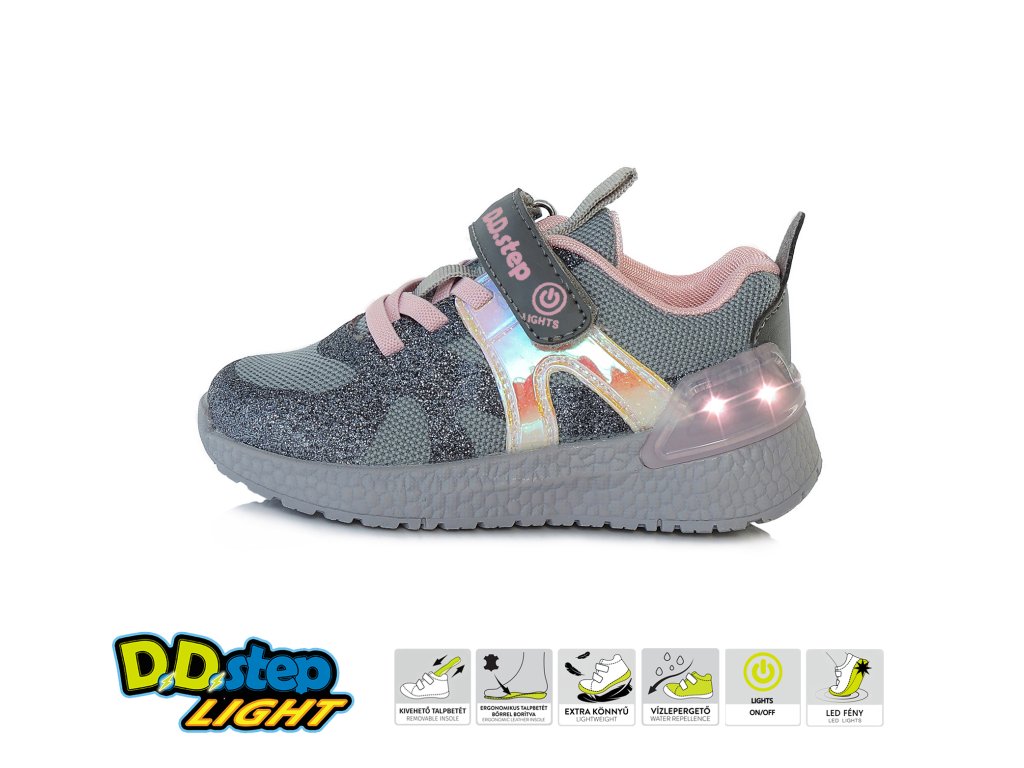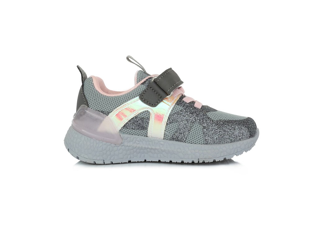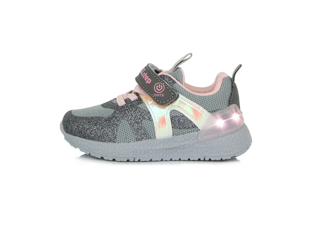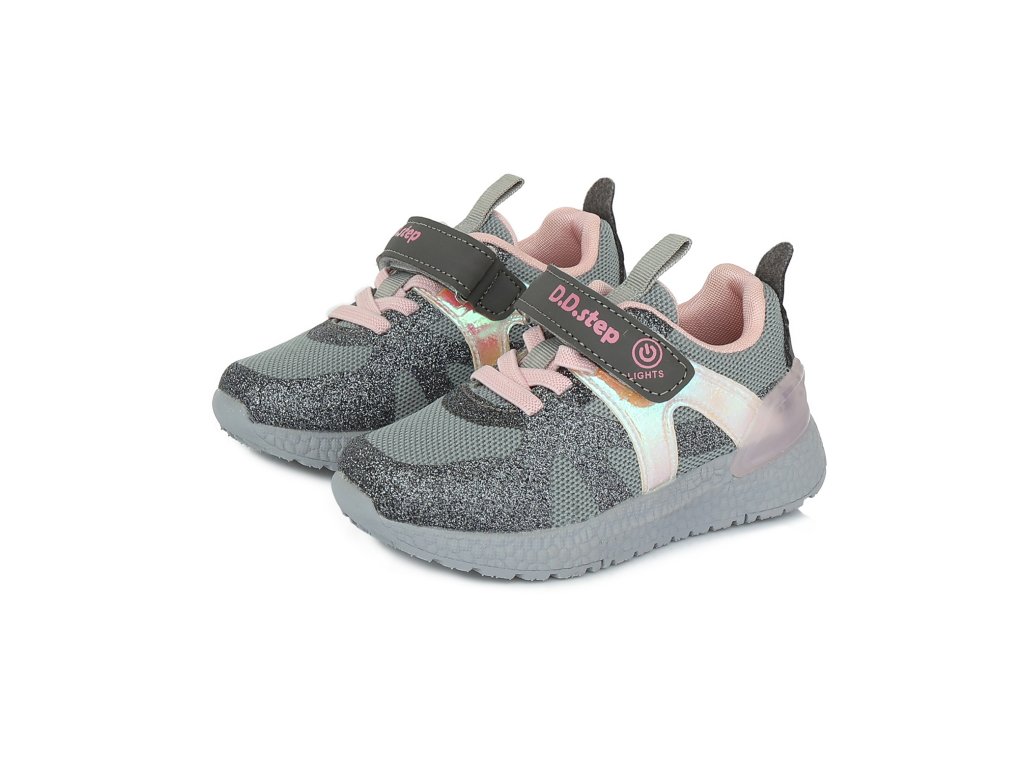Dívčí blikací tenisky D.D. step F61-834CL v šedo-růžové barvě potěší každou malou parádnici.