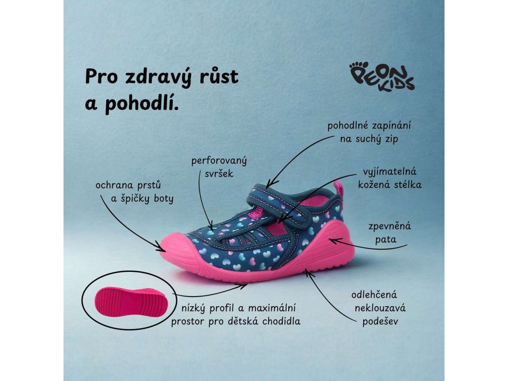 Papučky Peon barefoot kompromis s upínacím páskem na suchý zip jsou ideální volbou jako školní přezůvka nebo domácí obuv, přezůvky se snadno nazouvají.