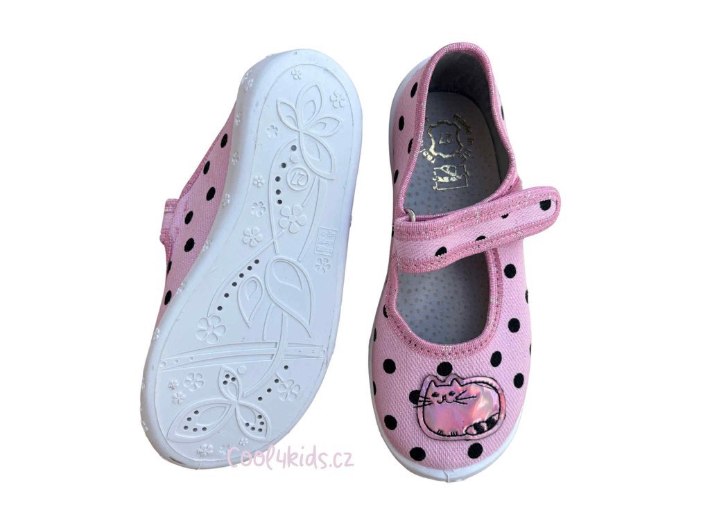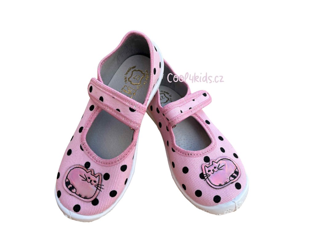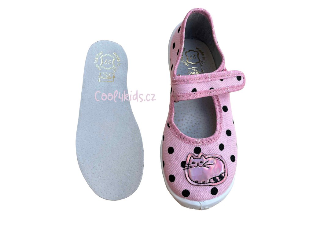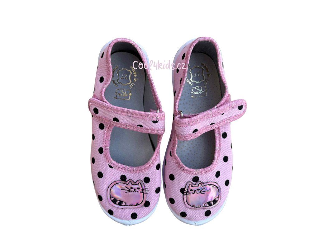 Dívčí bačkory RAWEKS Dorotka D39 růžové s kočičkou.