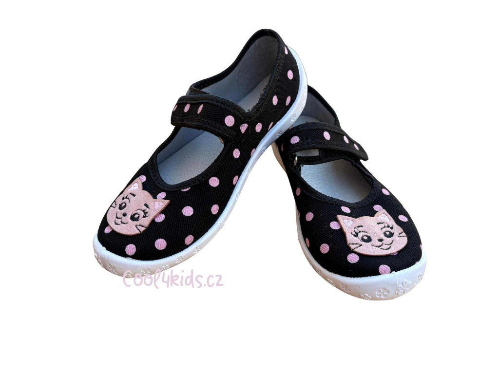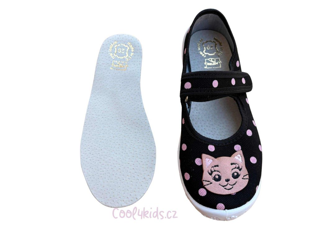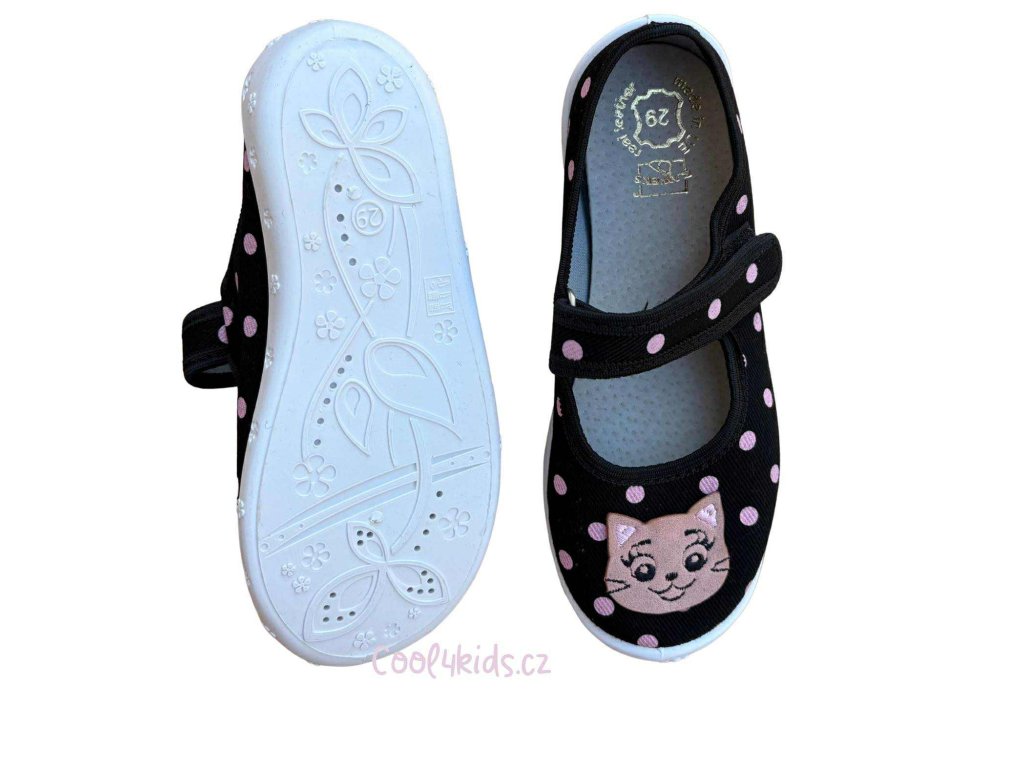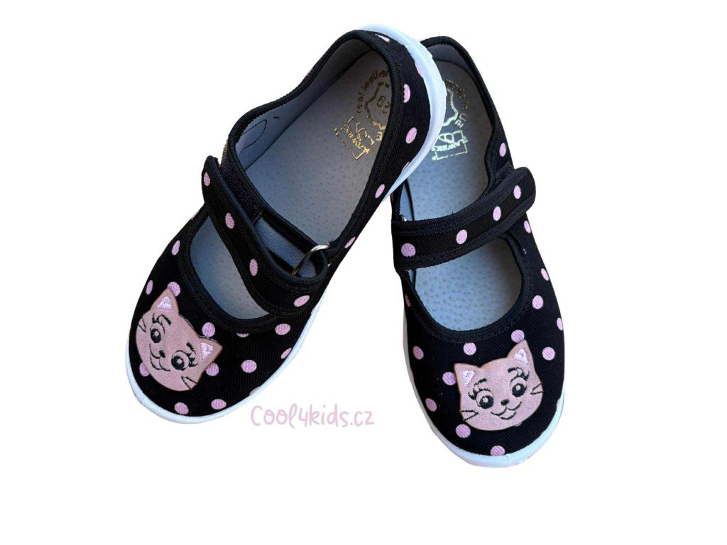 Dívčí bačkory RAWEKS Dorotka D47 černé s kočičkou.