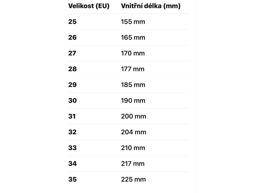 Praktické zapínání na suchý zip – snadné obouvání, pevné držení na noze. Doporučený nadměrek: 0,5–1 cm pro správný pohyb a pohodlí při chůzi. Měřte viz přiložená tabulka.