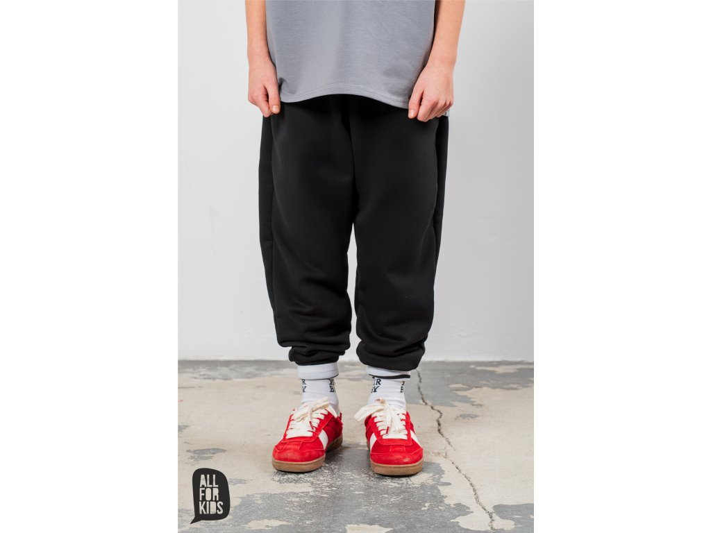 Chlapecké streetové tepláky All for Kids v klasické černé barvě, ve volnějším střihu s předními kapsami. Pohodlný kousek ideální do školy i na volný čas.