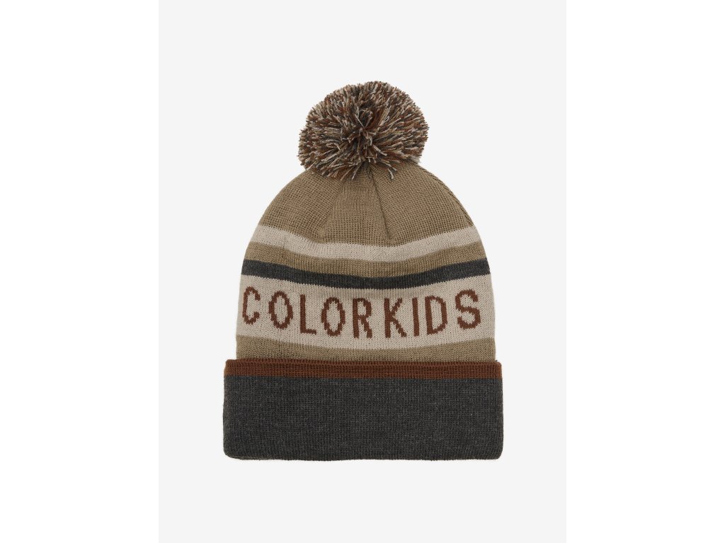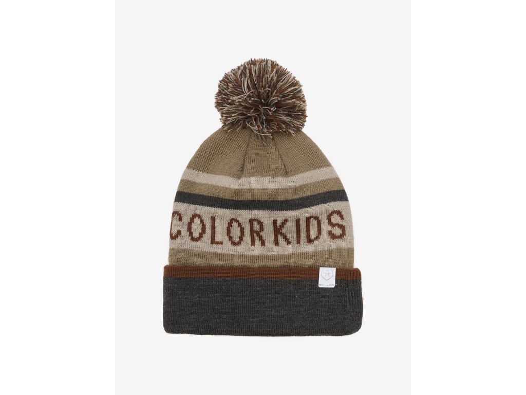 Chlapecká zimní čepice s bambulí – Color Kids barva hnědo - béžová.