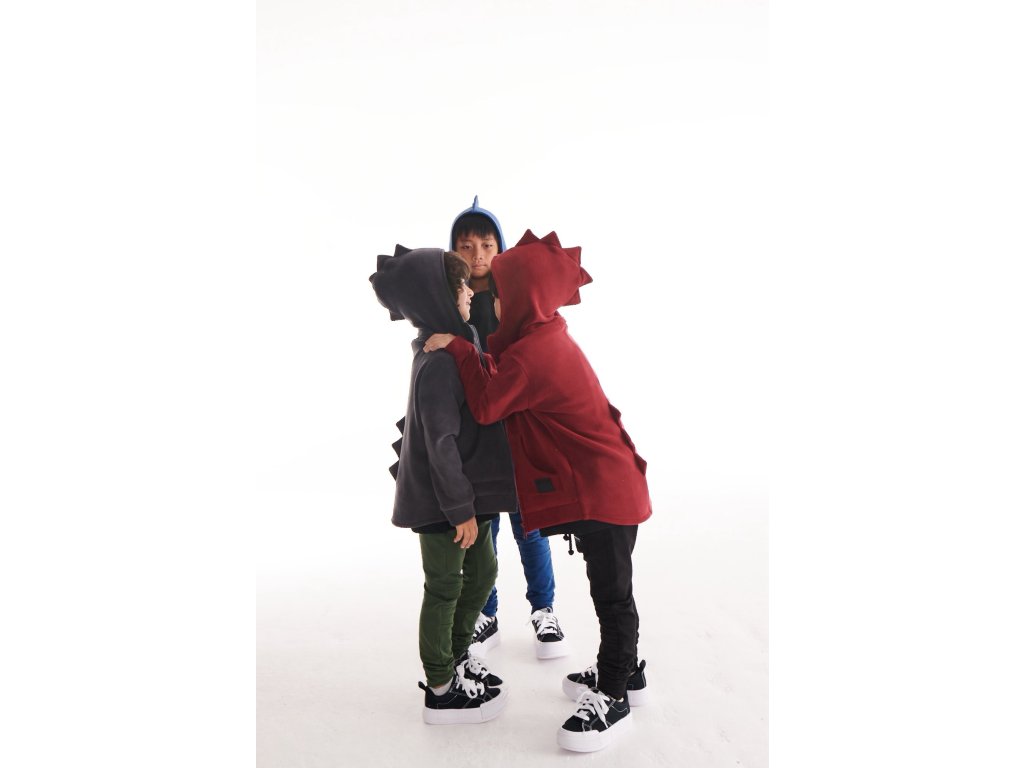 Mikina má lehce prodloužený střih, který krásně kryje záda, a praktickou kapuci s originálními ostny – detail, který z ní dělá oblíbený kousek.