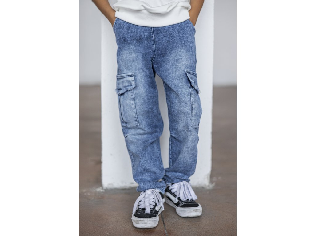 Mashmnie stylové chlapecké kalhoty s kapsami modré.