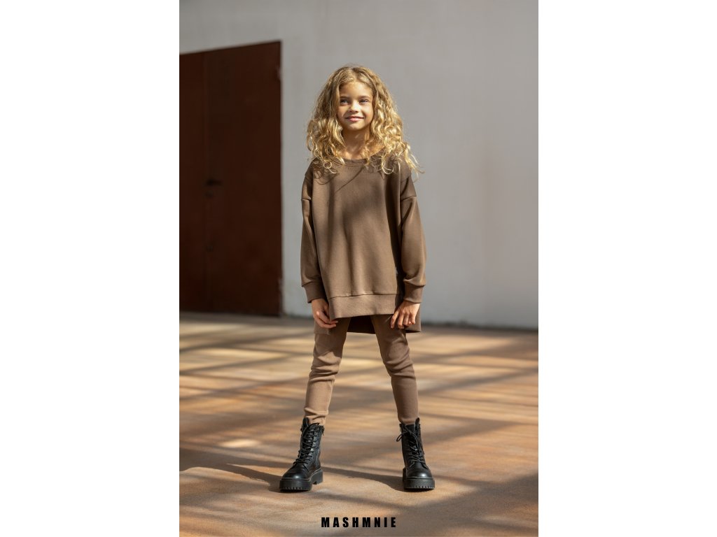 Pro dokonalý outfit doporučujeme zkombinovat mikinu s čokoládovými žebrovanými legínami, které najdete v naší nabídce.