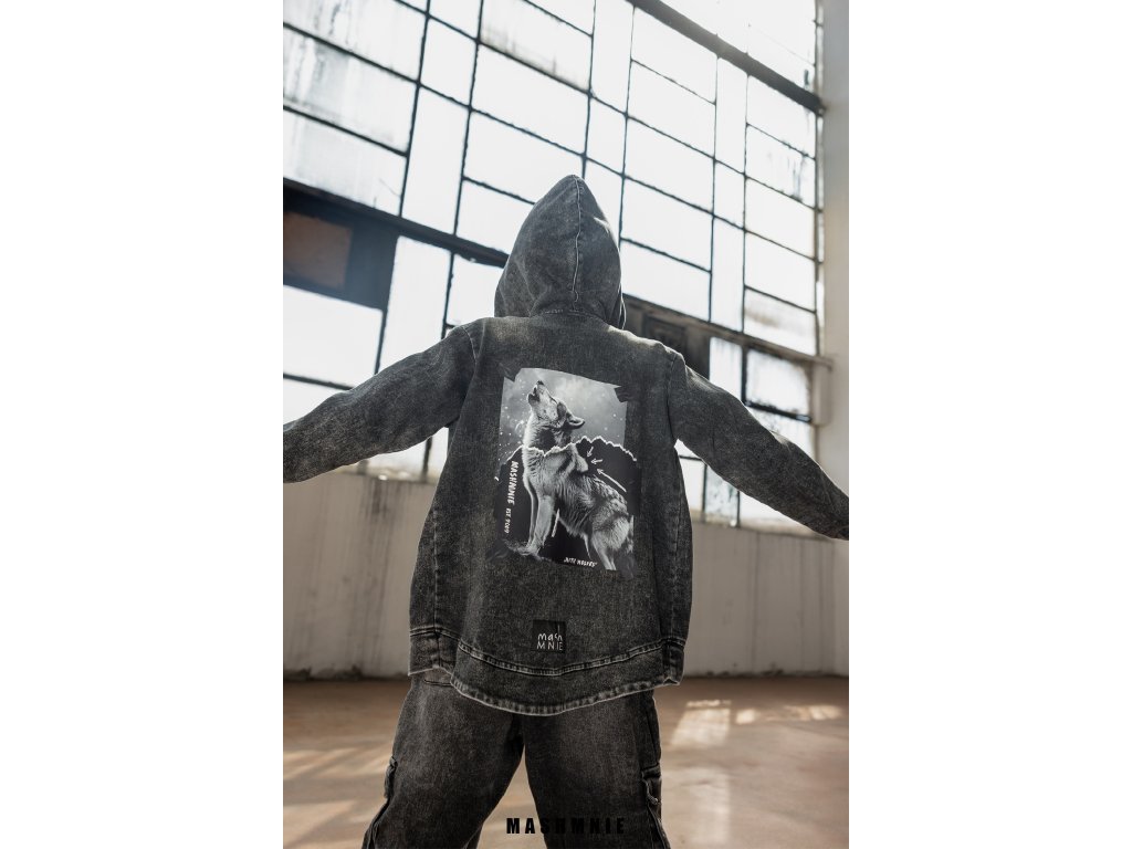 Na přední straně najdete decentní logo vlka, zatímco na zádech výrazný potisk s vlčí grafikou, který dělá z této bundy naprosto nepřehlédnutelný kousek.