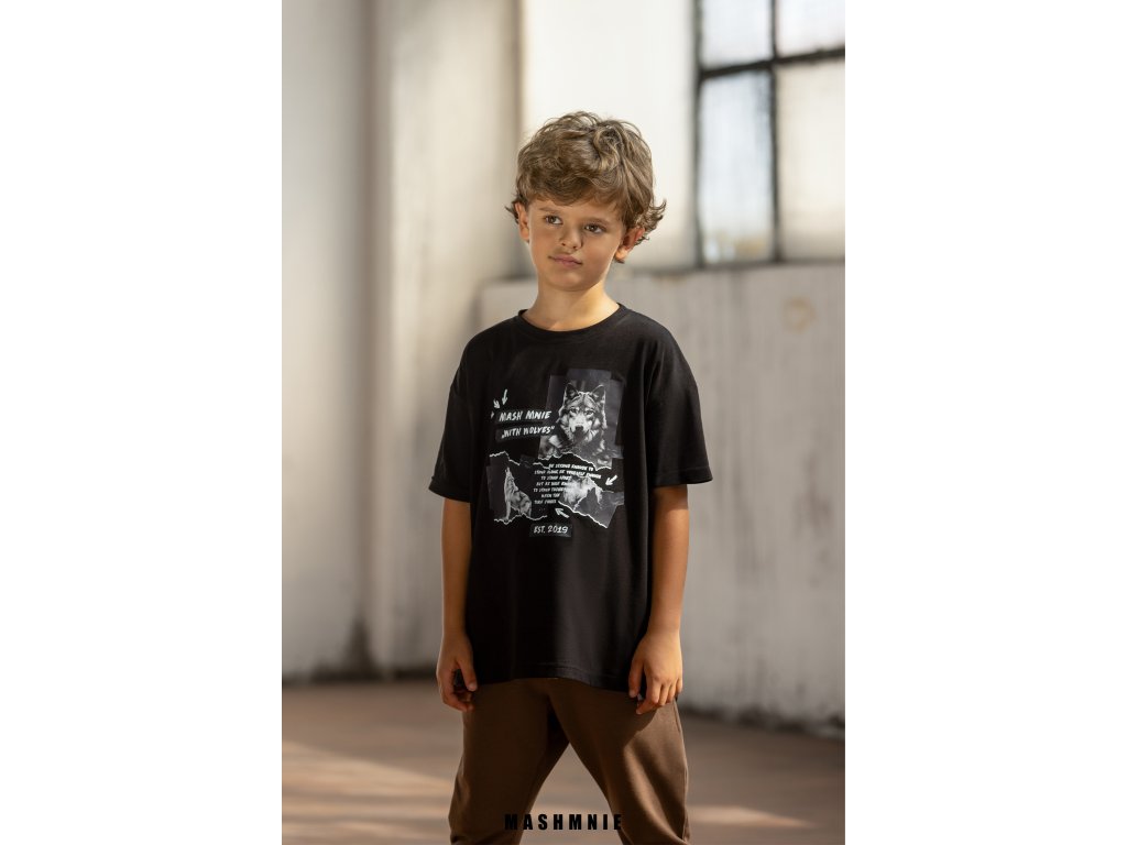 Klasické černé tričko z kolekce Wolf by Mashmnie oživuje originální potisk s motivem vlků na přední straně.