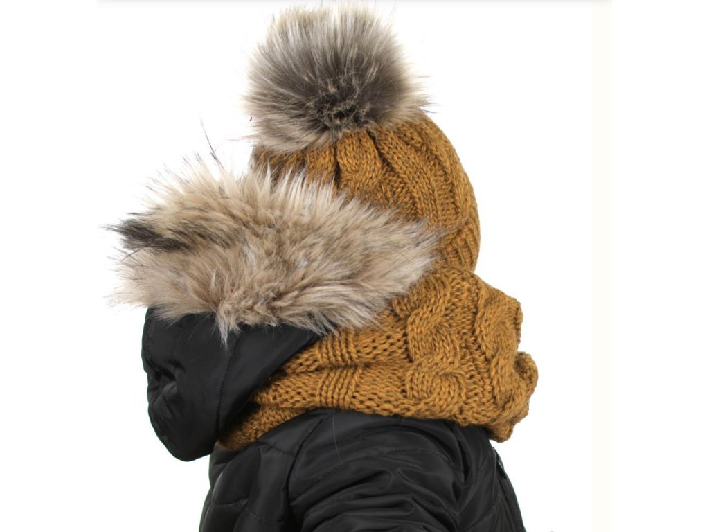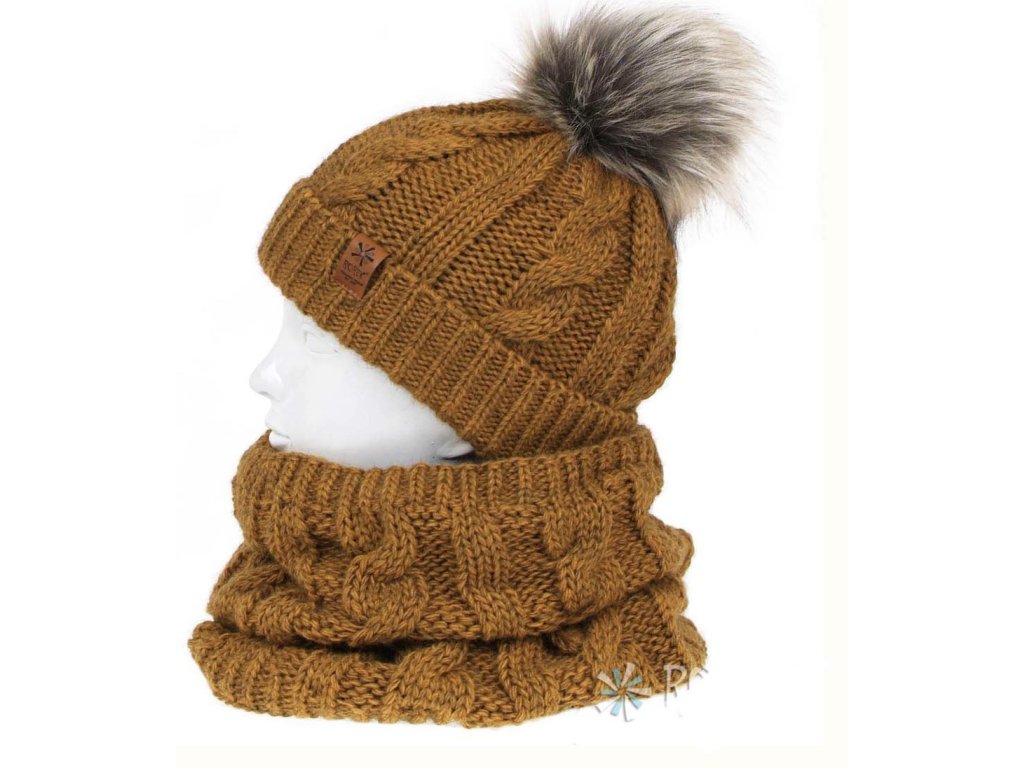 Zimní extra hřejivý set čepice s bambulí a nákrčník.