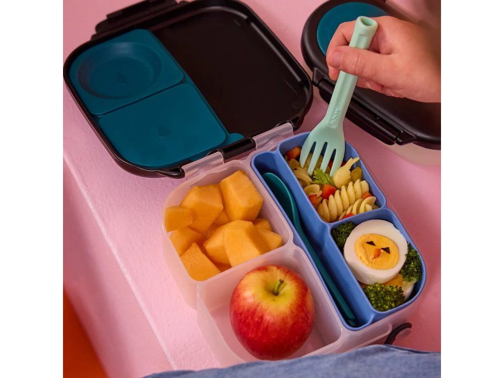 Díky chytrému členění přihrádek, vyjímatelné přepážce a pružnému víčku pohodlně zabalíte pestrou svačinu do školy, práce i na výlet.