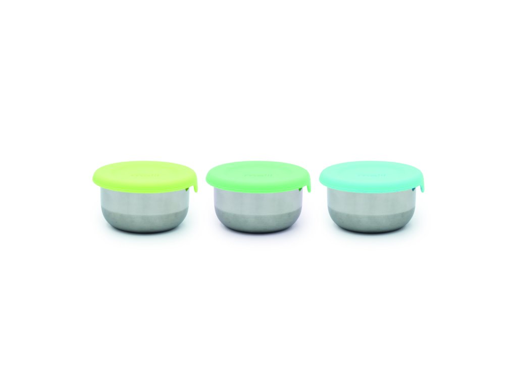 • sada obsahuje 3 nerezové mini dózy s barevnými silikonovými víčky